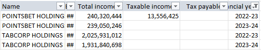 We’re still sifting through last week’s ATO corporate tax transparency data, and here’s what we just found for the couple of online gambling companies listed.
